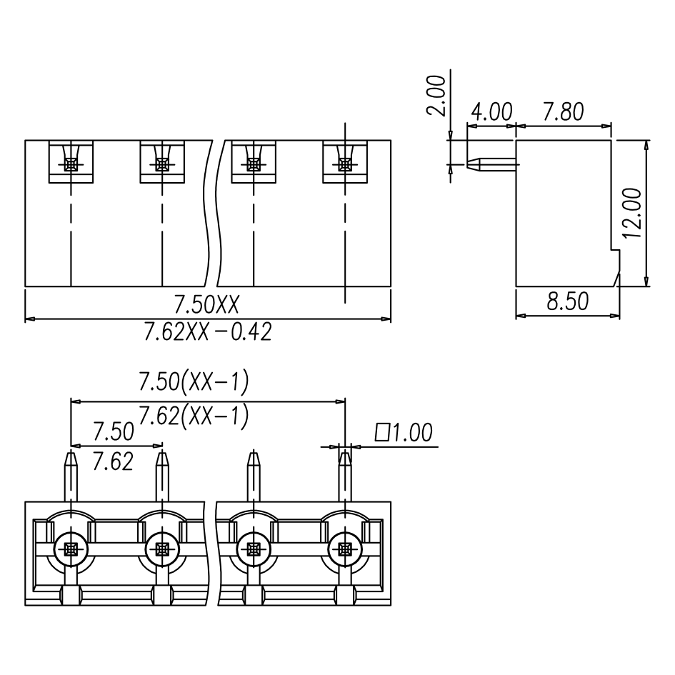Pitch: 7.5 mm/7.62 mm
