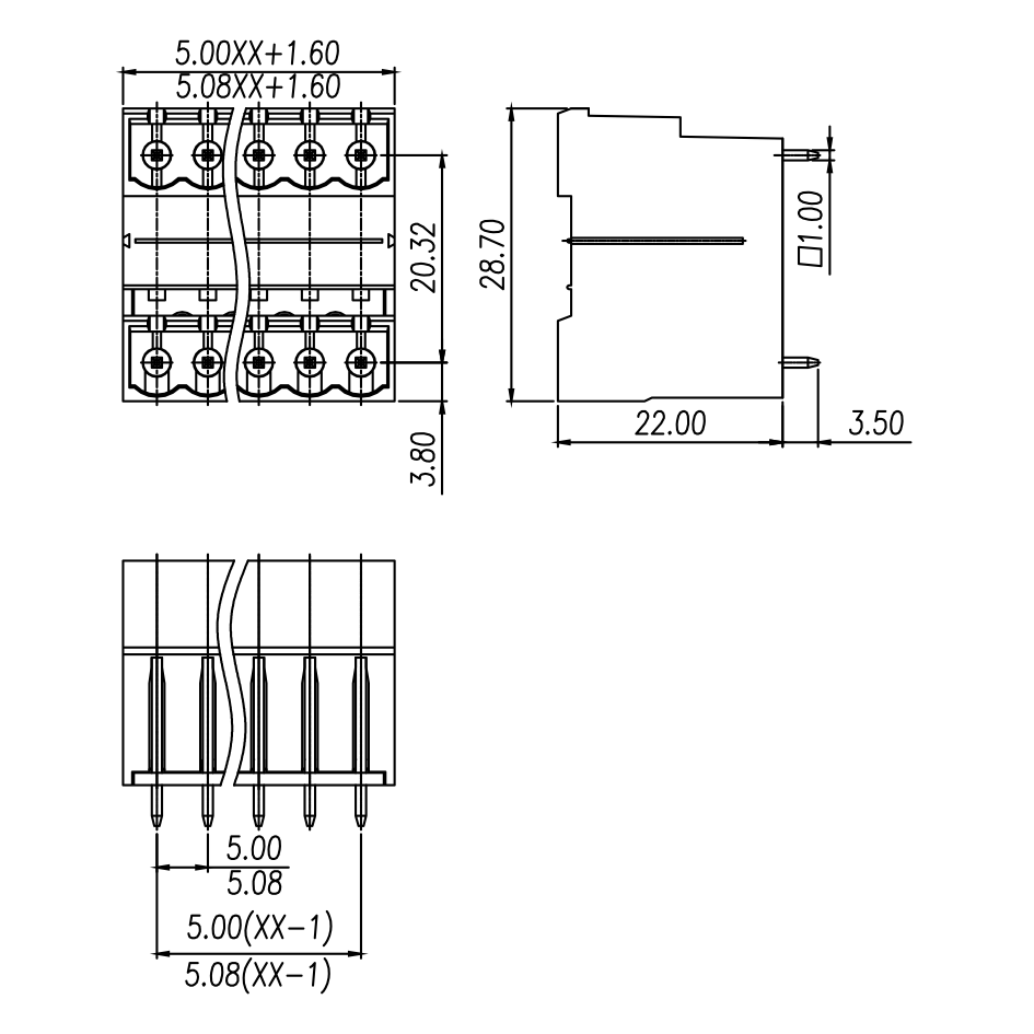 Pitch: 5.0 mm/5.08 mm