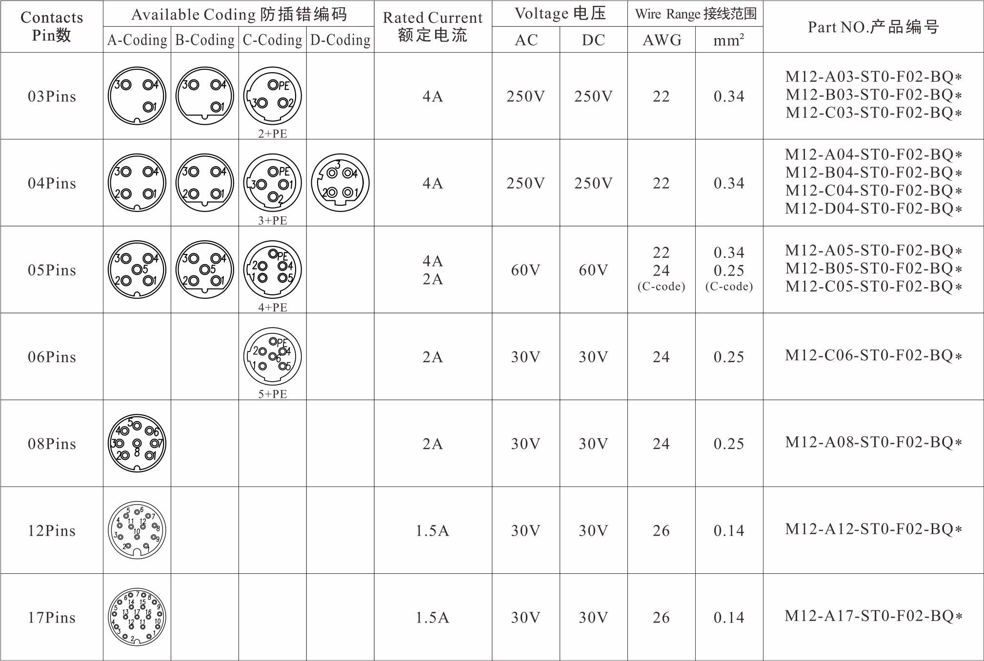 22/0.3422,24/0.34,0.25(C-code)24/0.2526/0.14