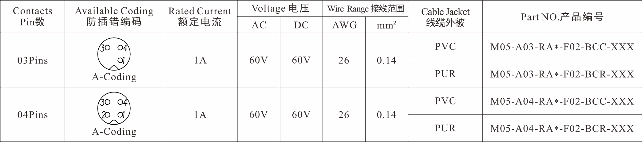 Part No 產(chǎn)品編碼:M05-A**-RA0-F02-BC*-XXX