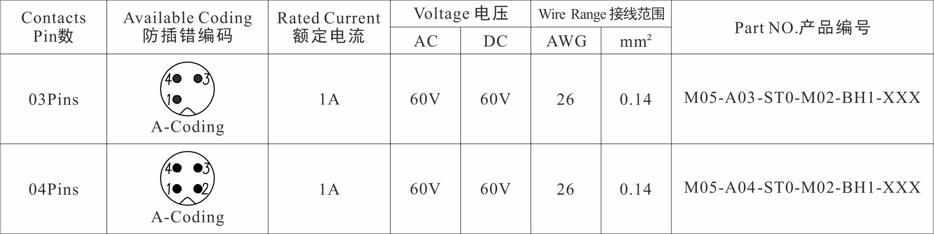 Part No 產(chǎn)品編碼:M05-A**-ST0-M02-BH1-XXX
