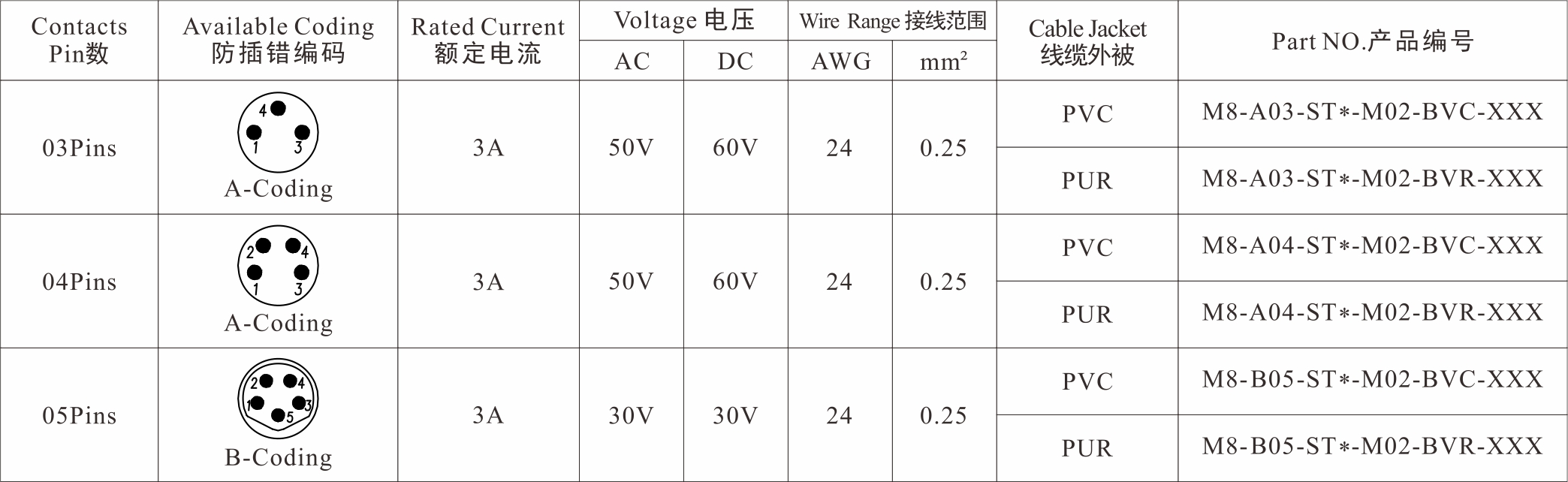 Part No 產(chǎn)品編碼:M08-X**-ST0-M02-BV*-XXX