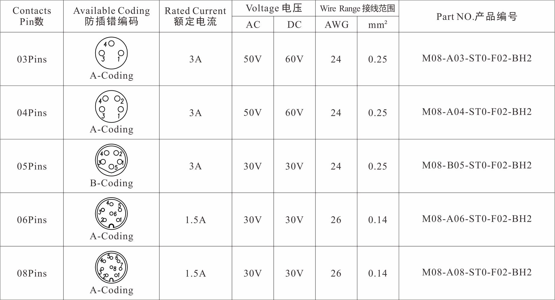 Part No 產(chǎn)品編碼:M08-X**-ST0-F02-BH2