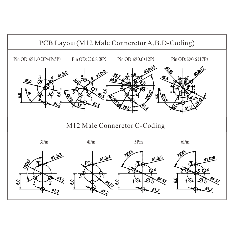 M12 母頭面板式,PCB型,后鎖安裝,屏蔽針
