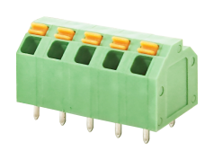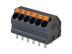 彈簧式PCB接線端子,接線分籠式和V形彈簧連接方式,具有抗振特點(diǎn),可以連接截面為0.08mm2至16mm2的所有類型的導(dǎo)線,間距2.5mm至10.16mm可供選擇,可以同螺釘連接PCB接線端子相互替代使用,增加了靈活性。產(chǎn)品設(shè)計(jì)符合IEC60998、UL1059、UL486E、CSA C22.2 No.158等國(guó)際標(biāo)準(zhǔn)。